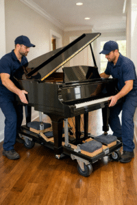 Here is what most people do not realize about pianos. They are not just heavy, they are incredibly delicate instruments with thousands of moving parts that can be knocked out of alignment with one solid bump. A baby grand piano can weigh anywhere from 500 to 800 pounds, and an upright can hit 300 to 500 pounds depending on the model. That weight is not evenly distributed either. The cast iron plate inside holds most of the weight, which means the center of gravity shifts as you tilt or move the instrument. You cannot just grab four friends, tip it on its side, and wheel it out the door. The legs on most pianos are not designed to support lateral stress, and removing them incorrectly can crack the soundboard or damage the harp. Professional piano movers use specialized dollies, piano boards, and padding systems designed specifically for these instruments, and they know how to navigate tight corners, staircases, and doorways without causing structural damage to your home or the piano itself.